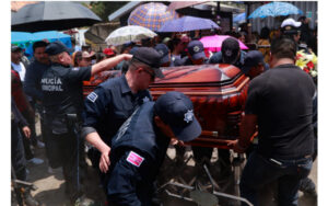 Su féretro, simboliza no solo su vida, sino también un sistema que lo dejó desprotegido, el ataúd está flanqueado por sus compañeros, quienes, con lágrimas en los ojos, no pueden creer que esa sea su última despedida.