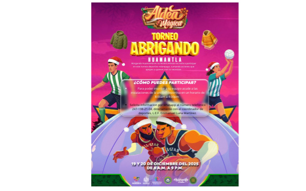 385Grados / Huamantla / REDACCIÓN / Con el objetivo de generar bienestar social y apoyar a las familias que más lo necesitan durante la temporada invernal, el Ayuntamiento de Huamantla, a través de la Dirección de Bienestar, invita a la ciudadanía a participar en el torneo solidario “Abrigando Huamantla”, una iniciativa que año con año une al deporte con la solidaridad.
