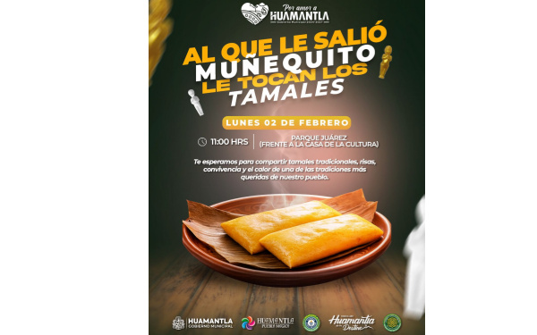 La cita es este lunes 2 de febrero a las 11:00 horas, en el Parque Juárez, frente a la Casa de la Cultura, donde familias huamantlecas podrán reunirse para compartir tamales tradicionales, convivencia y un ambiente de alegría que fortalece el tejido social.