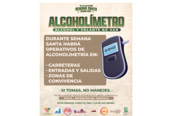 Implementan en Huamantla operativo de alcoholimetro para la zona Oriente como parte de «Semana Santa Segura 2026”