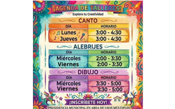 385 Grados / Tocatlán / REDACCIÓN / El día de hoy te invitamos a participar en nuestros talleres Totalmente gratuitos en el salón de usos múltiples de la Presidencia Municipal.