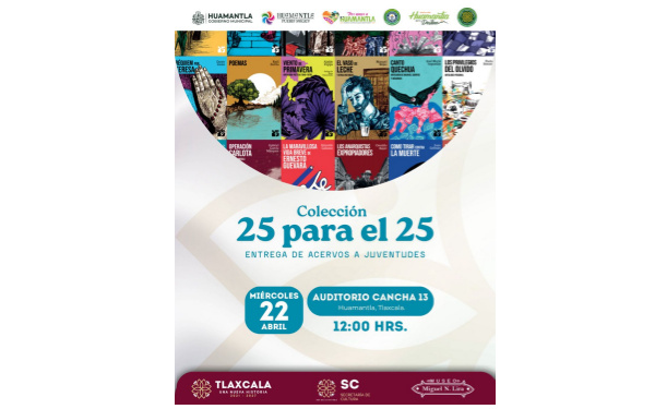 385Grados / Huamantla / REDACCIÓN / El Gobierno Municipal de Huamantla, a través de la Coordinación de Cultura, realizará este miércoles 22 de abril la entrega de acervos literarios “25 para el 25”, una iniciativa dirigida a juventudes del municipio con el propósito de fortalecer el pensamiento crítico y fomentar el hábito de la lectura.