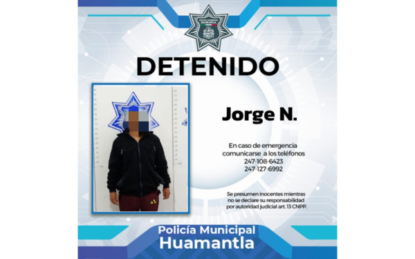 385 Grados / Huamantla / REDACCIÓN / Gracias a la oportuna intervención de la Policía Municipal de Huamantla, se logró la detención de Jorge “N”, de 28 años de edad, quien fue señalado por presuntamente cometer actos indebidos en la vía pública ante menores de edad.