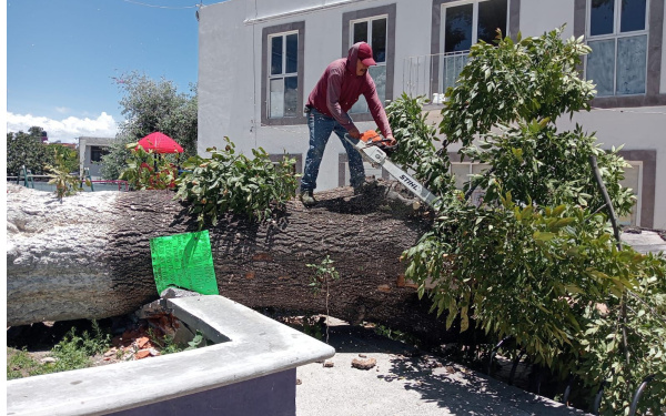 385Grados / Huamantla / REDACCIÓN / El Gobierno Municipal de Huamantla, a través de la Dirección de Servicios Municipales, realizó el retiro de un árbol milenario tipo fresno (ficus) que se encontraba en el parque del barrio de La Preciosa.
