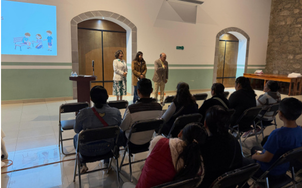 El evento, realizado este jueves 23 de octubre en el Auditorio Ex-cancha Trece, contó con la participación de la comunidad educativa de la Escuela Telesecundaria “Fernando Montes de Oca”, quienes mostraron gran interés en los temas abordados por el especialista, entre ellos las señales de alerta ante el acoso escolar y los canales de apoyo profesional a los que pueden acudir las familias.