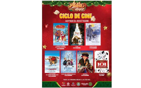385Grados / Huamantla / REDACCIÓN / El ayuntamiento de Huamantla anunció el Ciclo de Cine Navideño 2025, que se llevará a cabo en el Auditorio del Museo Taurino como parte de las actividades decembrinas de Aldea Mágica, con funciones especiales dirigidas a niñas, niños, jóvenes y adultos que deseen disfrutar momentos de convivencia en familia.