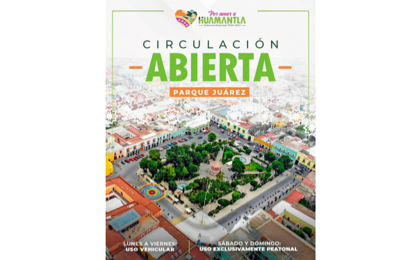385 Grados / Huamantla / REDACCIÓN / Con el propósito de agilizar la circulación en el primer cuadro de la ciudad y mantener el atractivo turístico del centro histórico, el H. Ayuntamiento de Huamantla, que preside Salvador Santos Cedillo, informa que a partir del lunes 9 de septiembre se abrirá la circulación de vehículos en el Parque Juárez.