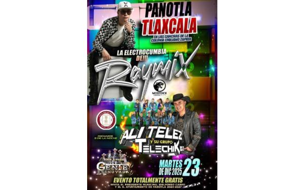385 Grados / Panotla / REDACCIÓN / El municipio de Panotla se prepara para vivir una gran noche de música y convivencia con la realización de un evento totalmente gratuito que se llevará a cabo en las canchas de la colonia Emiliano Zapata. La cita será el próximo martes 23 de diciembre de 2025, a partir de las 9 de la noche, como parte de las actividades impulsadas para fortalecer la convivencia social y el sano esparcimiento.