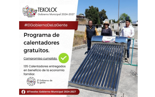 385Grados / Texoloc / REDACCIÓN / En el municipio de San Damián Texoloc, el Ayuntamiento, en coordinación con la Dirección de Obras Públicas, llevó a cabo la ejecución del Programa Municipal de Calentadores Solares, mediante recursos del FISM 2025, beneficiando directamente a 135 familias.