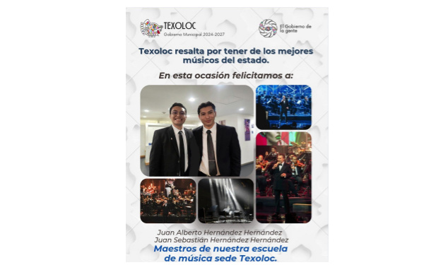 También hizo un llamado a la población a que “si te apasiona la música, tú también puedes formar parte. Inscríbete en la Escuela de Música de Texóloc y desarrolla tu talento con la guía de grandes maestros”.