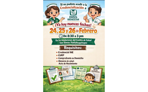 Las jornadas se llevarán a cabo los días 24, 25 y 26 de febrero, en un horario de 8:30 de la mañana a 3:00 de la tarde, en las instalaciones del Centro de Salud de San Simón Tlatlahuquitepec, donde personal correspondiente brindará atención a quienes deseen realizar este trámite.