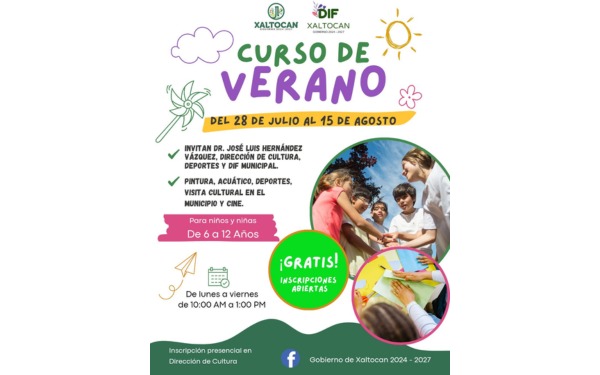 Con cupo limitado, el Curso de Verano 2025 busca fomentar la creatividad, el trabajo en equipo y el desarrollo integral de la niñez xaltoquense. Las autoridades municipales reiteran la invitación a participar en este programa gratuito y formativo, que cada año se consolida como uno de los favoritos de la comunidad.