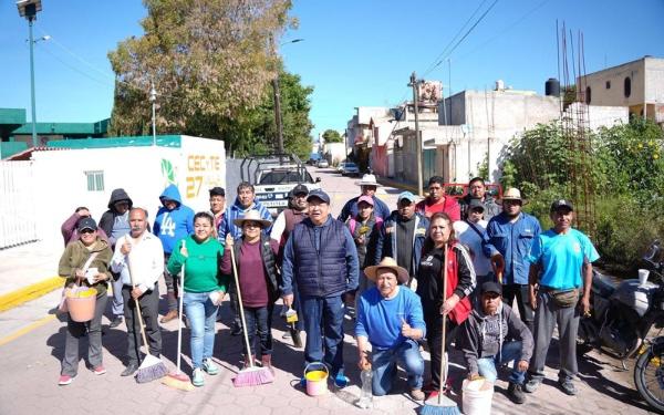 385 Grados / Tepetitla/ REDACCIÓN / En un esfuerzo conjunto por mejorar los espacios públicos, el presidente municipal de Tepetitla, Yoni Hernández Alvarado, encabezó este sábado una jornada de faena en la comunidad de Villa Alta. Frente al plantel del CECyTE, vecinos y personal del Gobierno Municipal realizaron labores de barrido, poda y pintura de calles, demostrando que la colaboración entre autoridades y ciudadanía genera resultados visibles.