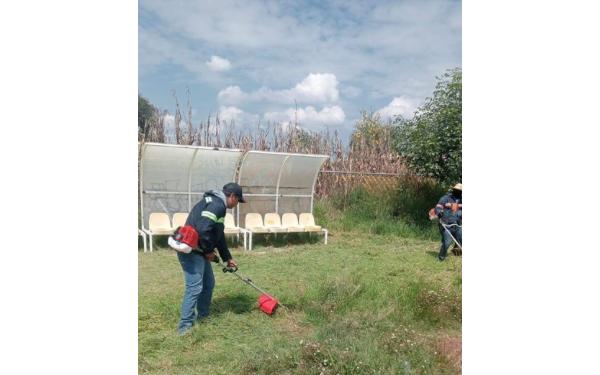 385 Grados / Tepetitla / REDACCIÓN / El Ayuntamiento de Tepetitla de Lardizábal, a través del área de Servicios Públicos Municipales, continúa con las acciones de mantenimiento y rehabilitación de espacios públicos en distintas comunidades del municipio. En esta ocasión, los trabajos se llevaron a cabo en la cancha de fútbol de San Mateo Ayecac, con el objetivo de conservar en buenas condiciones las áreas destinadas al deporte y la convivencia social.