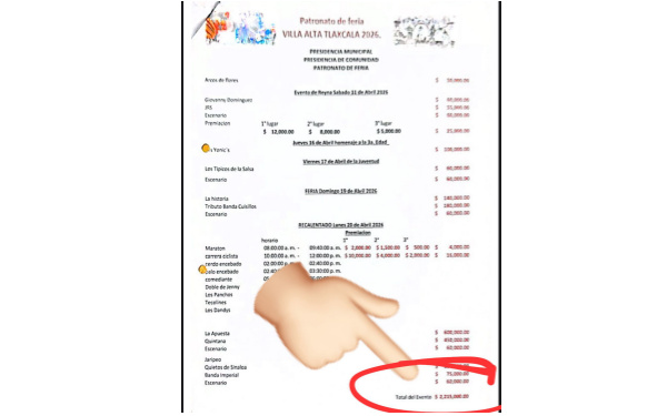 También detallaron que ese recurso se ocupará para realizar un evento del Certamen de Reyna y una serie de agrupaciones entre las que destacan Giovanny Domínguez, Yonic´s, Los Típicos de la Salsa, Tributo Banda Cuisillos, La orquesta Quintana, Banda imperial.