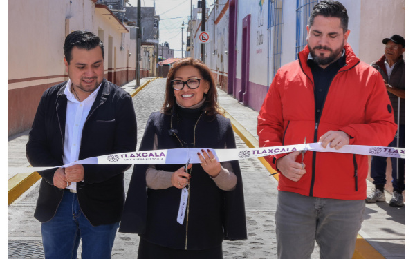 En Sanctórum, Cuéllar Cisneros inauguró la sustitución de guarniciones, banquetas, pavimento con empedrado, agua potable y alcantarillado sanitario en la calle Emilio Carranza con una inversión bipartita entre estado y municipio de un millón 133 mil 424 pesos.