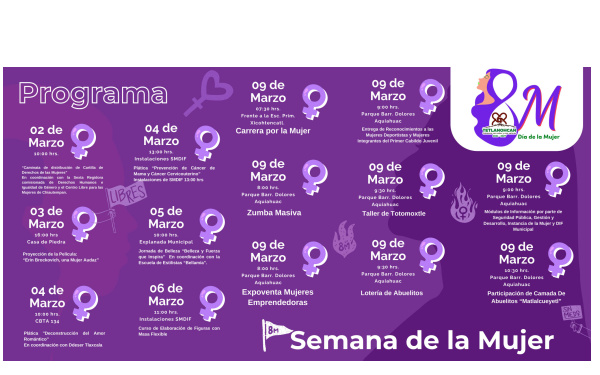 385 Grados / Tetlanohcan / REDACCIÓN / En el marco del Día Internacional de la Mujer, el Gobierno Municipal de Tetlanohcan ha preparado un programa integral de actividades del 2 al 9 de marzo, con el objetivo de reconocer, fortalecer y visibilizar la participación de las mujeres en los distintos ámbitos de la vida pública, social, cultural y económica del municipio.