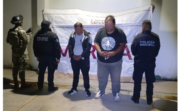 Elementos de la Policía Estatal arribaron al lugar a las 23:47 horas, donde realizaron la intervención correspondiente y procedieron a la detención de: Daniel N., de 35 años de edad, originario de Puebla y Rafael N., de 31 años de edad, con domicilio en Puebla.