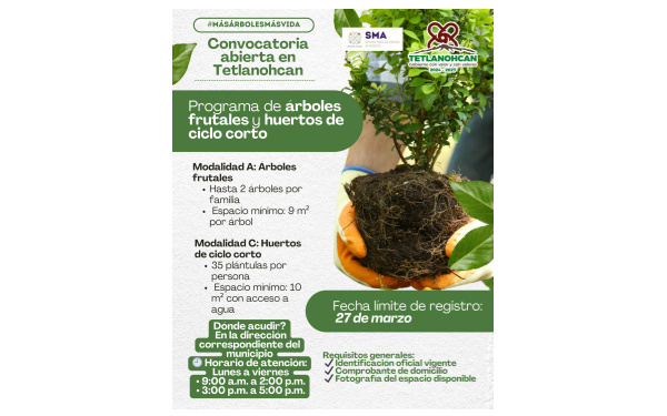La convocatoria permanecerá abierta hasta el próximo 27 de marzo, por lo que se invita a la ciudadanía a aprovechar este programa que contribuye al bienestar familiar y al desarrollo sustentable de Tetlanohcan.