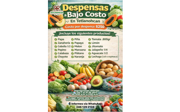 El Gobierno Municipal invita a la población interesada a acercarse y aprovechar este programa, el cual busca contribuir al bienestar de las familias mediante el acceso a alimentos frescos y a un precio accesible.