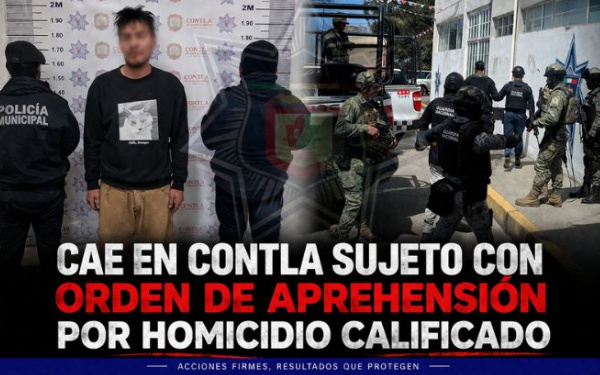 385Grados / Contla / REDACCIÓN / En el marco del «𝗢𝗽𝗲𝗿𝗮𝘁𝗶𝘃𝗼 𝗚𝘂𝗮𝗿𝗱𝗶á𝗻: 𝗦𝗲𝗺𝗮𝗻𝗮 𝗦𝗮𝗻𝘁𝗮 𝗦𝗲𝗴𝘂𝗿𝗮», durante los recorridos de vigilancia y prevención del delito, elementos de la Dirección de Seguridad Pública y Vialidad de Contla de Juan Cuamatzi detuvieron el sábado pasado a un masculino identificado como 𝙅. 𝙀𝙙𝙪𝙖𝙧𝙙𝙤 𝙉., de 37 años de edad, quien contaba con una orden de aprehensión vigente por un delito de alto impacto.