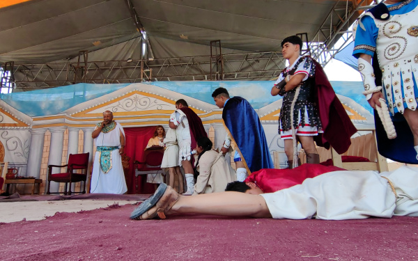 385 Grados / Aquiahuac / Antonio GUARNEROS / Al menos 270 actores, todos ellos oriundos de la comunidad de Santa Cruz Aquiahuac, celebraron 53 años de la representación del “Circo Romano” y otros pasajes bíblicos, con la obra de “El Divino Mártir”, la cual ha convertido a esa población del municipio de Santa Isabel Tetlatlahuca, en uno de los principales atractivos de la Semana Santa en Tlaxcala.