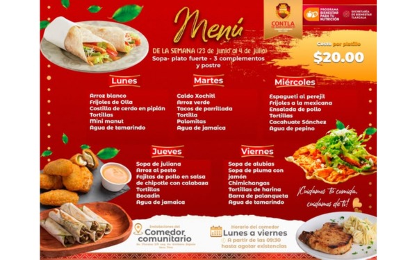 Este espacio busca mejorar la calidad de vida de las familias tlaxcaltecas mediante una alimentación adecuada a bajo costo. Por solo $20.00 pesos por persona, los asistentes pueden disfrutar de un menú completo y variado, que cambia semana a semana.