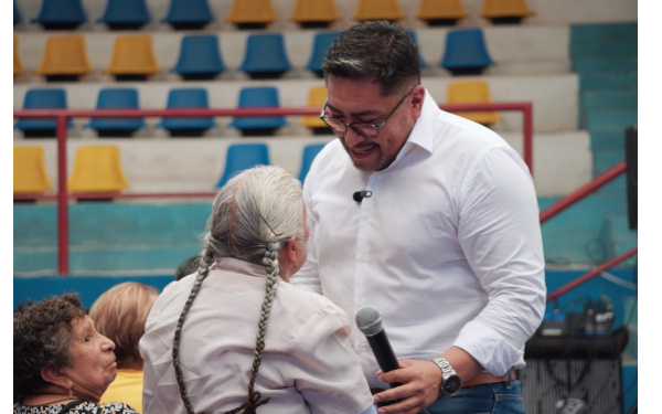 Durante su mensaje, el presidente municipal José Miguel Acatzi Luna agradeció la presencia de los adultos mayores y reconoció la importancia de su legado: