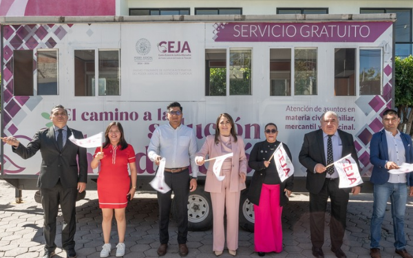 385 Grados / Mazatecochco / REDACCIÓN  / Con la finalidad de acercar la justicia alternativa para dirimir los conflictos entre las y los ciudadanos para generar una Cultura de Paz, este día, la presidenta del Poder Judicial de Tlaxcala, Anel Bañuelos Meneses y el presidente municipal de San Cosme Mazatecochco, Emilio González Cortés, dieron el banderazo de inicio de actividades de la Unidad Móvil del Centro Estatal de Justicia Alternativa (CEJAMÓVIL), la cual brindará sus servicios a partir de este día y hasta el próximo 12 de septiembre.