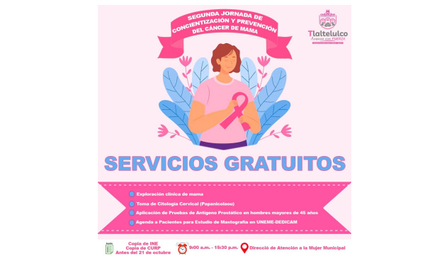385Grados / Tlaltelulco / REDACCIÓN / En el marco del Día Mundial contra el Cáncer de Mama, el Gobierno Municipal de La Magdalena Tlaltelulco, que preside la Lic. Rocío Meléndez, a través de la Dirección de Atención a la Mujer, anunció la realización de la Segunda Jornada de Concientización y Prevención del Cáncer de Mama.