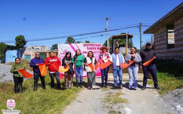 385 Grados / Tlaltelulco / REDACCIÓN / La presidenta municipal de La Magdalena Tlaltelulco, Rocío Meléndez, encabezó el banderazo de inicio de la obra de construcción de drenaje sanitario y red de agua potable en la calle 4 de Febrero, del barrio de Comalteopa. Esta acción forma parte del compromiso del gobierno municipal por atender las necesidades prioritarias de la población y fortalecer la infraestructura básica.