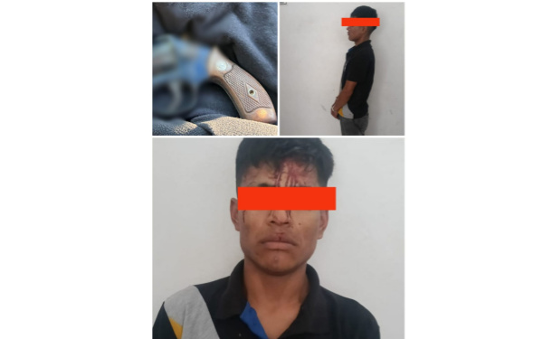 385 Grados / Zacatelco / REDACCIÓN / En una rápida acción policial, elementos de la Dirección de Seguridad Pública y Vialidad Municipal de Zacatelco lograron la detención de Miguel N., alias “El Pechos”, señalado como presunto responsable de herir con un proyectil de arma de fuego a un hombre durante una discusión familiar relacionada con la compra-venta de ropa.