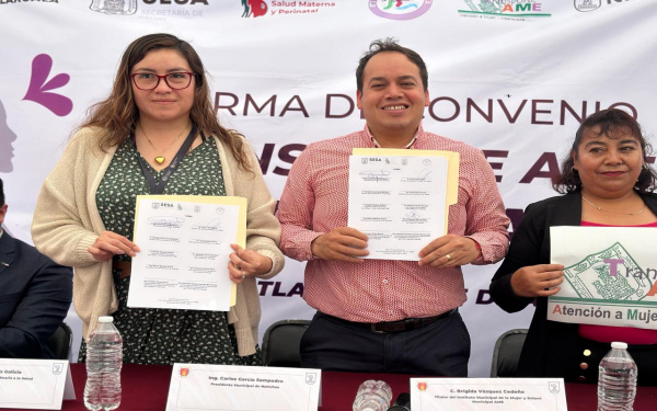 385Grados / Nativitas / Isabel JUÁREZ / Esta tarde, el presidente municipal de Natívitas, Carlos García Sampedro, firmó convenio de colaboración con el transporte AME, con la finalidad de apoyar a las mujeres embarazadas del municipio para facilitar su atención prenatal y de brindar una mejor atención en esta etapa de su embarazo.