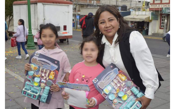 Luego de un espectaculo de payasos en el que niñas y niños disfrutaron de varias actividades, la presidenta municipal entregó muñecas, balones, y juguetes los asistentes.