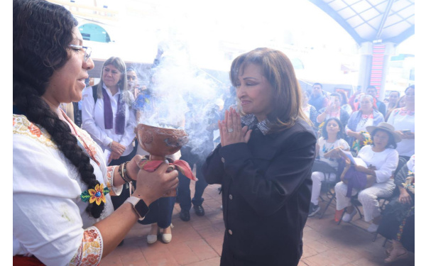 Antes, la subsecretaria para una vida Libre de Violencias, Ingrid Gómez Saracibar, y la directora general de Financiera para el Bienestar, María del Rocío Mejía Flores, ambas del gobierno de México, también participaron el ritual que preserva las raíces tlaxcaltecas.