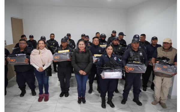 Durante la entrega, los elementos recibieron uniformes completos, que incluyen camiseta, pantalón, playera, botas, gorra y fornitura, así como equipo táctico como bastón retráctil, gas pimienta, silbato, lámpara táctica, candados de mano e impermeable.