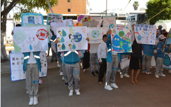 En el marco del Día Mundial del Agua, la alcaldesa invitó a los alumnos de las escuelas primarias “Adolfo López Mateos” de Poxtla segunda sección, Coyolxauhqui, del barrio de Teotlalpan y Nezahualcóyotl, del barrio Tecpa Pluma, a reflexionar con sus padres sobre el cuidado de las barrancas: no tirar basura y sobre todo valorar el agua potable que ya es escasa.