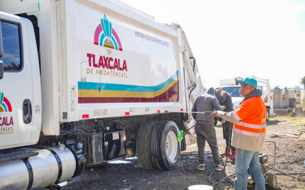 Como parte de las acciones para garantizar el adecuado mantenimiento del parque vehicular, el Ayuntamiento adquirió dos equipos Karcher para el lavado de los camiones recolectores, labor que es realizada por el propio personal de limpia, lo que asegura que las unidades se encuentren en óptimas condiciones para salir a las rutas programadas.