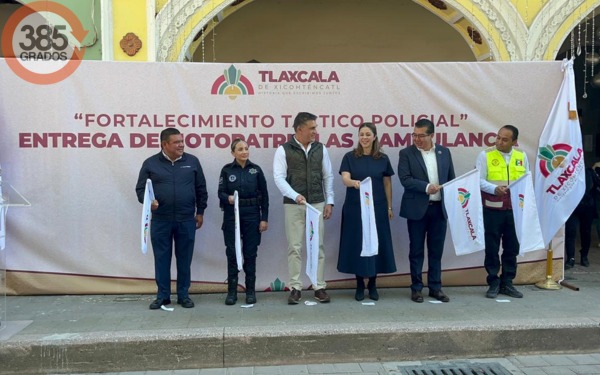 385 Grados / Tlaxcala Xicoténcatl / Javier C.C / Como parte del fortalecimiento de la estrategia de seguridad pública en la capital del estado, el Ayuntamiento de Tlaxcala entregó siete motopatrullas y una ambulancia a la Dirección de Seguridad Pública y Protección Ciudadana.