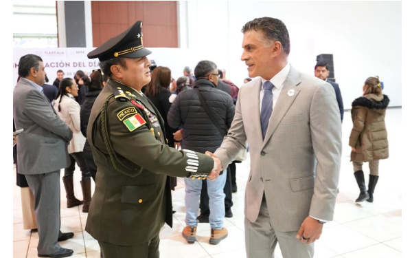 385 Grados / Tlaxcala / REDACCIÓN / Con motivo del Día de la Bandera, el alcalde de Tlaxcala, Alfonso Sánchez García, estuvo presente en la ceremonia alusiva que encabezaron autoridades de los tres niveles de gobierno y contó con la participación activa de elementos de la Guardia Nacional, encabezados por el coordinador estatal Raúl Martínez González, quienes reforzaron el carácter institucional del evento.