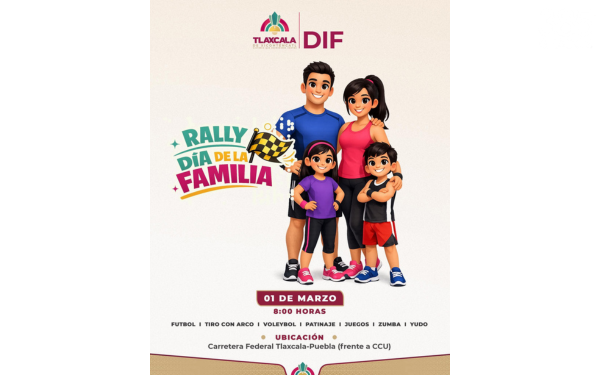 385 Grados / Tlaxcala / REDACCIÓN / El Ayuntamiento de Tlaxcala, que preside Alfonso Sánchez García, a través del DIF municipal, invita a la ciudadanía en general de la capital y zonas aledañas a participar en el próximo «Rally Día de la Familia», evento que busca transformar el espacio público en un punto de convivencia, deporte y la alegría.