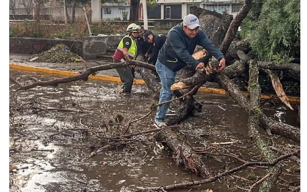 385 Grados / Tlaxcala Capital / REDACCIÓN / Gracias al despliegue oportuno de las brigadas de “Más territorio y menos escritorio” y al trabajo preventivo implementado por el Ayuntamiento de Tlaxcala, la lluvia registrada este domingo dejó únicamente daños menores y la caída de un árbol en la zona del Puente Rojo, situación que ya es atendida por el área de Protección Civil.