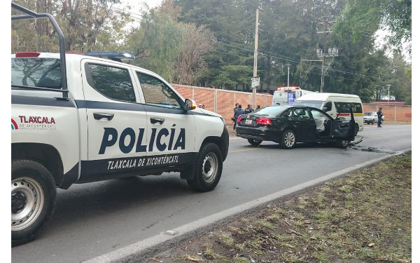 385 Grados / Tlaxcala / REDACCIÓN / Elementos de la Dirección de Seguridad, Protección Ciudadana y Movilidad del Municipio de Tlaxcala atendieron de manera oportuna un reporte de emergencia recibido a través del 911, derivado de un accidente vial entre dos vehículos registrado sobre Avenida Universidad, en La Loma Xicohténcatl.