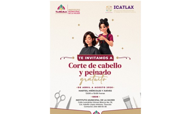 385 Grados / Tlaxcala Capital / REDACCIÓN / El gobierno que encabeza el presidente Alfonso Sánchez García invita a la ciudadanía en general a aprovechar los cortes de cabello y peinados gratuitos que se estarán realizando en las instalaciones del Instituto Municipal de la Mujer (IMM).