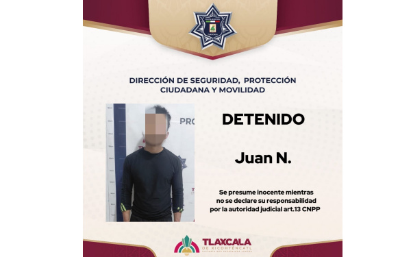 Posteriormente, al revisar su estatus legal, se confirmó que el sujeto contaba con una orden de aprehensión vigente por el delito de robo calificado, por lo que fue puesto a disposición de la Fiscalía General del Estado de Tlaxcala para continuar con el proceso correspondiente.
