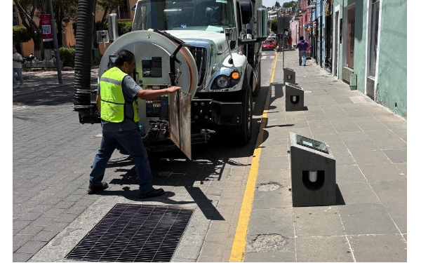 *Las brigadas limpian rejillas en la zona del mercado “Emilio Sánchez Piedras” y con el apoyo del camión Vactor se desazolvan alcantarillas en la Av. Juárez.