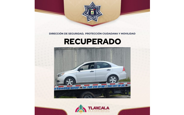 Policía municipal de Tlaxcala recupera auto robado en colonia La Loma Xicohténcatl