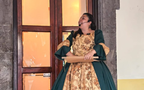 Con campana en mano, La Pregonera del Rey narró con el pergamino extendido los acontecimientos más importantes que dieron forma a la capital, su andar y su voz transportaron a las personas a distintos episodios que han marcado los últimos cinco siglos de la ciudad.