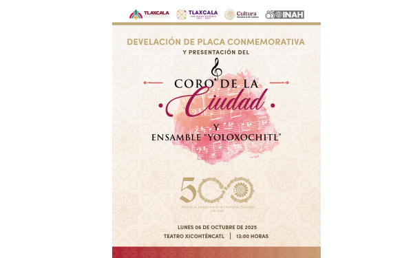 Como parte del programa cultural, el público podrá disfrutar de la presentación del Coro de la Ciudad de Tlaxcala, que compartirá escenario con el ensamble “Yoloxochitl”, en un encuentro musical que promete llenar de voces, armonía y emoción el histórico recinto.