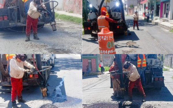En esta ocasión, se realizaron trabajos en la calle Ferrocarril Mexicano, en la localidad de Santa María Ixtulco, donde cuadrillas atendieron puntos afectados por el deterioro del pavimento.